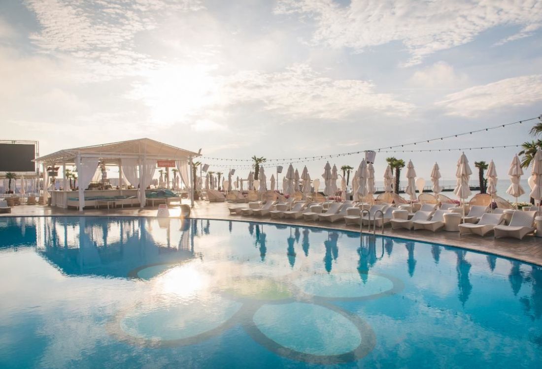 Bright on Beach - це стильний пляжний комплекс в пудрово-рожевому кольорі з декількома басейнами, просторими терасами, рестораном, пляжем і нічним клубом. Ідеальне місце для сімейного спокійного відпочинку.