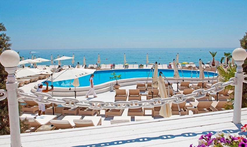 Ціни на шезлонг з матрацом і парасолькою 200-350 грн, в залежності від дня, місця лежака - біля басейну і ближче до моря, - дорожче. Альтернатива шезлонги - оренда тапчана на 4 людини за 900 грн. Оренда намету на день обійдеться в 1000 грн. Відпочиваючи, ні про що не варто турбуватися - напої і їжу, за бажанням, принесе офіціант.